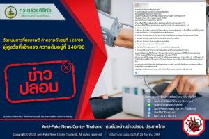 ข่าวปลอม อย่าแชร์! วัยหนุ่มสาวที่สุขภาพดี ค่าความดันอยู่ที่ 120/80 ผู้สูงวัยที่แข็งแรง ความดันอยู่ที่ 140/90