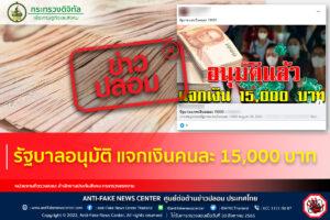 ข่าวปลอม อย่าแชร์! รัฐบาลอนุมัติ แจกเงินคนละ 15,000 บาท