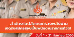 สำนักงานปลัดกระทรวงพลังงาน เปิดรับสมัครพนักงานราชการทั่วไป 9 อัตรา รับสมัครทางอินเทอร์เน็ต ตั้งแต่วันที่ 1 – 21 กันยายน 2565