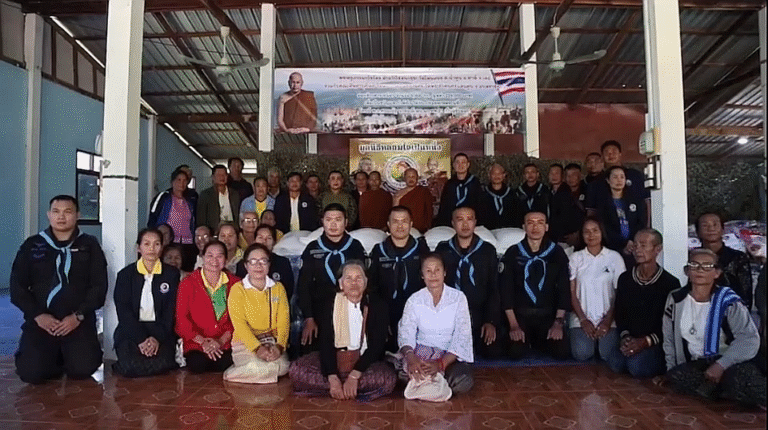 พระครูภาวนาวีรวัตร ฝ่ายวิปัสสนาธุระ วัดโพนทอง อำเภอท่าลี่ จังหวัดเลย พร้อมด้วยคณะศิษยานุศิษย์มอบข้าวสารเหนียวจำนวน 6,400 กิโลกรัม