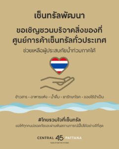 ศูนย์การค้าเซ็นทรัล ทั่วประเทศ เปิดจุดรับบริจาคสิ่งของ ‘ไทยรวมใจที่เซ็นทรัล’ ช่วยเหลือและส่งกำลังใจแก่ผู้ประสบภัยน้ำท่วมภาคใต้