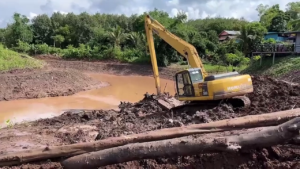 ขุดลอกคลองระบายน้ำ เพื่อป้องกันอุทกภัย และน้ำป่าไหลหลากในพื้นที่ชุมชนบ้านน้ำจันทร์ ตำบลหนองงิ้ว อำเภอวังสะพุง จังหวัดเลย
