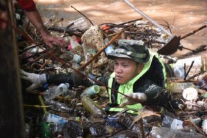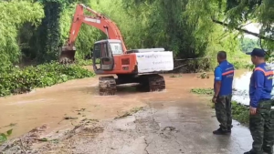 รถเครื่องจักรกลรถขุดตัก เร่งขุดลอกปรับพื้นที่ และทำแนวตลิ่งตลอดจนบรรตุกระสอบทราย ป้องกันน้ำท่วมในพื้นที่ จังหวัดเลย