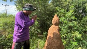 พระพุทธรูปปางอุ้มบาตร โผล่ริมห้วย ชาวบ้านแห่ขอเลขเด็ดเลขดังทุกวัน ชาวบ้านเผยเกิดขึ้นเองจากจอมปลวกธรรมชาติ