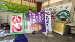 ป้ายหาเสียง เหลืออย่าทิ้งคนขอนแก่นขอรับมาทำเสื้อ-กระเป๋า-รองเท้า สร้างรายได้ให้กับชุมชน ลดปัญหาขยะอย่างยั่งยืน