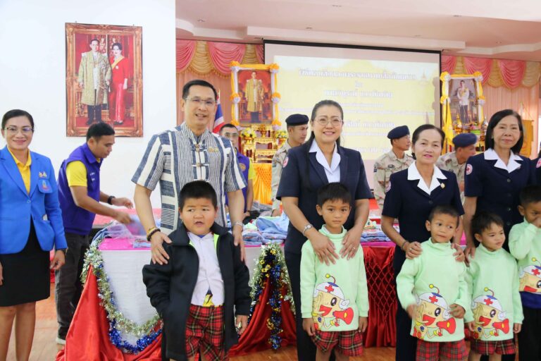 เหล่ากาชาดจังหวัดมหาสารคาม มอบเสื้อกันหนาวสภากาชาดไทยให้แก่นักเรียนโรงเรียนราชประชานุเคราะห์ ในเขตพื้นที่อำเภอวาปีปทุม