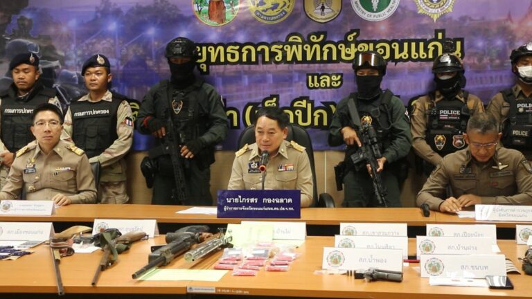 เมื่อเวลา 13.00 น.วันที่ 24 พ.ค.2567 ที่ห้องประชุมแก่นชัย ชั้น 5 ศาลากลาง จ.ขอนแก่น นายไกรสร กองฉลาด ผวจ.ขอนแก่น พร้อมด้วย พ.ต.อ.ถนอมสิทธิ์ วงษ์วิจารณ์ รอง ผบก.ภ.จว.ขอนแก่น เจ้าหน้าที่ ปปส.,สาธารณสุข และ กอรมน.ร่วมกันแถลงข่าวผลการตรวจค้นคดียาเสพติดในพื้นที่ จ.ขอนแกน ในพื้นที่เป้าหมายตลอดทั้งวันในวันนี้ รวม 55 จุด โดยสามารถจับกุมผู้ต้องหาคดียาเสพติดได้รวม 74 ราย แยกเป็นผู้เสพ 42 ราย ผู้ค้า 27 รายคด