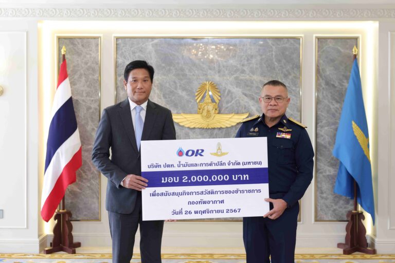 OR สานต่อความร่วมมือกองทัพอากาศ มอบเงินสนับสนุนสวัสดิการข้าราชการกองทัพอากาศ 2 ล้านบาท