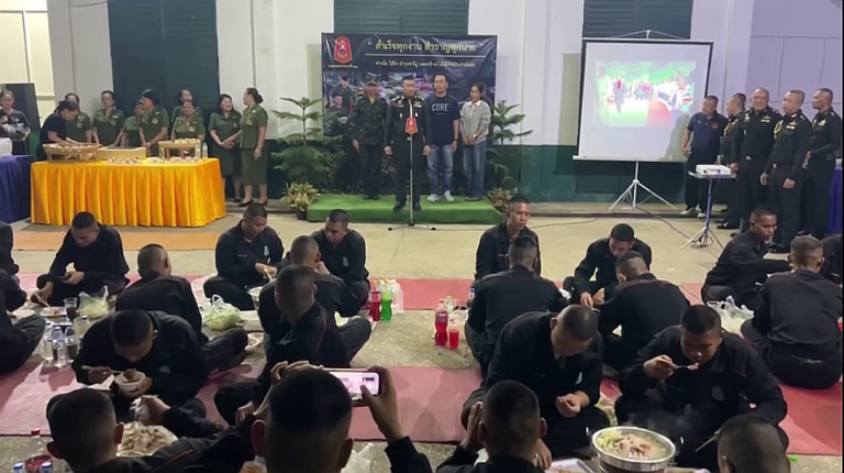 ผู้บัญชาการมณฑลทหารบกที่ 28 จัดเลี้ยงเมนูพิเศษ หมูกระทะ น้อง ๆ ทหารปลดประจำการ มอบขวัญกำลังใจแก่กำลังพล