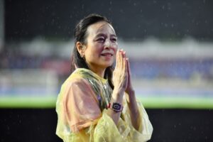 “มาดามแป้ง” นวลพรรณ ล่ำซำ นายกสมาคมกีฬาฟุตบอลแห่งประเทศไทยฯ และประธานเจ้าหน้าที่บริหาร บริษัท ไทยลีก จำกัด เป็นประธานพิธีมอบถ้วยและเงินรางวัลแชมป์ฟุตบอล รีโว่ ไทยลีก ประจำฤดูกาล 2023/24 ให้แก่ สโมสร บุรีรัมย์ ยูไนเต็ด หลังจบเกมเปิดบ้านชนะ ขอนแก่น ยูไนเต็ด 8-2 เมื่อวันที่ 26 พฤษภาคม 2567 ท่ามกลางแฟนบอล 32,222 คน พร้อมรับเงินรางวัล 10,000,000 บาท