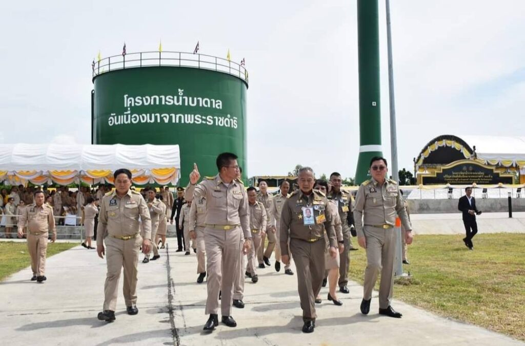 เมื่อวันที่ 16 สิงหาคม 2567 เวลา 08.30 น. พลตรี กิตติพงษ์ เนื่องชมภู ผู้บัญชาการมณฑลทหารบกที่ 23 พร้อมด้วย พันเอก จตุพงษ์ พลเสน ผู้บังคับกองพันมณฑลทหารบกที่ 23 ร่วมให้การต้อนรับ พลอากาศเอก สถิตย์พงษ์ สุขวิมล เลขานุการในพระองค์พระบาทสมเด็จพระเจ้าอยู่หัว ณ ท่าอากาศยานนานชาติขอนแก่น ต่อจากนั้นร่วมปฏิบัติภารกิจ ในโอกาสตรวจเยี่ยมโครงการจัดหาน้ำบาดาลขนาดใหญ่แก้ปัญหาภัยแล้ง อันเนื่องมาจากพระราชดำริ ระยะที่ 2 ณ บ้านหนองแวง หมู่ที่ 7 ตำบลยางคำ อำเภอหนองเรือ จังหวัดขอนแก่น ซึ่งเป็นหนึ่งใน 77 แห่ง ในโครงการจัดหาน้ำบาดาลขนาดใหญ่ อันเนื่องมาจากพระราชดำริ โดยในพื้นที่จังหวัดขอนแก่น มีจำนวนทั้งสิ้น 3 พื้นที่ได้แก่ บ้านดงเค็ง อ.หนองสองห้อง บ้านยางคำ อ.หนองเรือ และ ต.บ้านโนน อ.ซำสูง ซึ่งโครงการจัดหาน้ำบาดาลขนาดใหญ่แก้ปัญหาภัยแล้ง อันเนื่องมาจากพระราชดำริ ระยะที่ 2 บ้านหนองแวงนี้ เจาะและพัฒนาบ่อน้ำบาดาลเป็นบ่อผลิตลึก 60 เมตร ท่อขนาดเส้นผ่าศูนย์กลาง 8 นิ้ว จำนวน 8 บ่อ มีปริมาณสารละลายรวม ไม่เกิน 1,200 มิลลิกรัมต่อลิตร อยู่ในเกณฑ์ที่อนุโลมใช้ได้ และสามารถพัฒนาผลิตน้ำบาดาลขึ้นมาใช้ได้ 766,500 ลูกบาศก์เมตรต่อปี ราษฎรได้รับประโยชน์จำนวน 9 หมู่บ้าน 2330 หลังคาเรือน ใช้แก้ปัญหาขาดแคลนน้ำในฤดูแล้งและสามารถพัฒนาขยายไปยังพื้นที่รอบข้าง เพื่อแก้ปัญหา ภัยแล้งได้อย่างยั่งยืน โดยราชเลขานุการในพระองค์ ได้ให้คำแนะนำการพัฒนาแหล่งน้ำบาดาล ให้ประชาชนในพื้นที่ สามารถดูแลและบริหารจัดการด้วยตนเอง รวมทั้งการควบคุมคุณภาพน้ำให้ได้ตามมาตรฐานโครงการจัดหาน้ำบาดาลขนาดใหญ่แก้ปัญหาภัยแล้งอันเนื่องมาจากพระราชดำริ จิตอาสาต้านภัยแล้ง