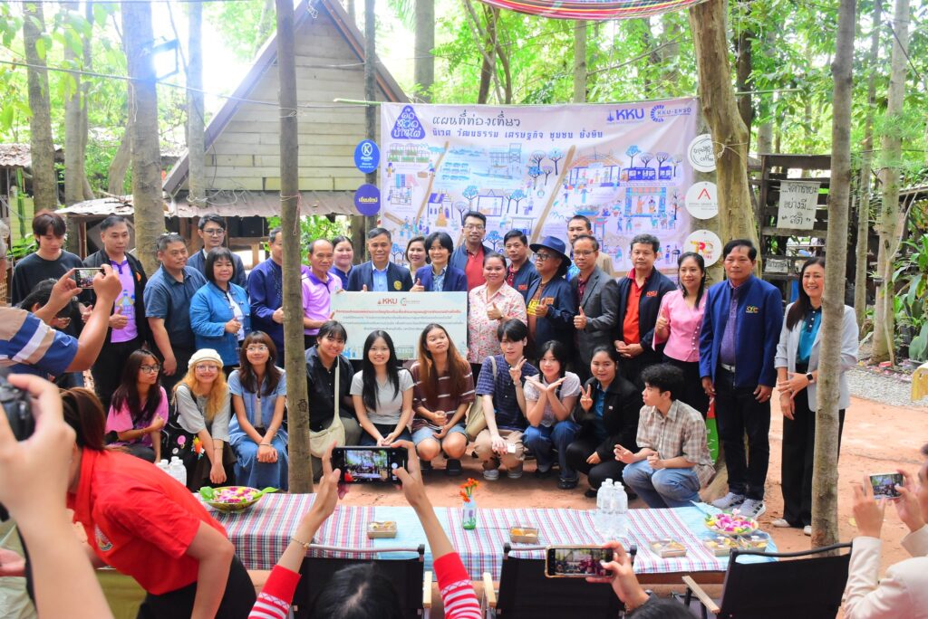 เมื่อวันที่ 6 กรกฎาคม 2568 – รองศาสตราจารย์ น.สพ.ดร.ชูชาติ กมลเลิศ ผู้อำนวยการสำนักบริการวิชาการ มหาวิทยาลัยขอนแก่น พร้อมด้วย ผศ.สุรพล เนสุสินธุ์ รองผู้อำนวยการฝ่ายบริการวิชาการ และ บุคลากร เข้าร่วมเป็นเกียรติในพิธีส่งมอบผลงานจากวัสดุท้องถิ่นเพื่อพัฒนาชุมชนอย่างยั่งยืน ในกิจกรรม “คึดฮอดบ้านไผ่” ณ หลังวัด Coffee ตำบลหัวหนอง อำเภอบ้านไผ่ จังหวัดขอนแก่น เพื่อร่วมส่งเสริมและสนับสนุนการนำองค์ความรู้จากมหาวิทยาลัยไปประยุกต์ใช้ในการสร้างสรรค์ผลิตภัณฑ์ สร้างอาชีพ และยกระดับคุณภาพชีวิตของชุมชนอย่างยั่งยืน
