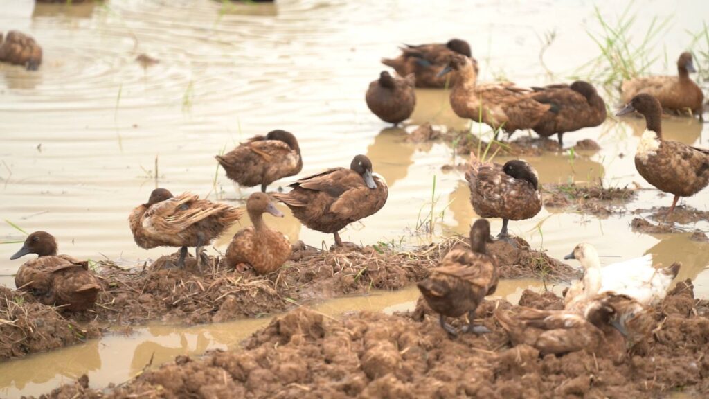 เมื่อเวลา 10.00 น. วันที่ 18 ก.ค. 2568 ผู้สื่อข่าวลงพื้นที่พูดคุยกับเกษตรกรเลี้ยงเป็ดไร่ทุ่ง บ.หนองหิน ม.8 ต.ศิลา อ.เมือง จ.ขอนแก่น พูดคุยกับ นายสมบัติ ดอกไม้เงิน อายุ 75 ปี ชาวอำเภอโพทะเล จังหวัดพิจิตร หลังนำเป็ดจำนวน 3,500 ตัว มาเลี้ยงบนที่นาข้าวที่เก็บไปแล้ว เพื่อให้เป็ดได้กินอาหารตามธรรมชาติในท้องนา หลังจากที่ย้ายเป็ดมาเลี้ยงในพื้นที่จังหวัดขอนแก่นกว่า 1 สัปดาห์ เพื่อรอเป็ดเก็บไข่เป็ดรอคนมารับซื้อส่งขายต่อกัมพูชา
