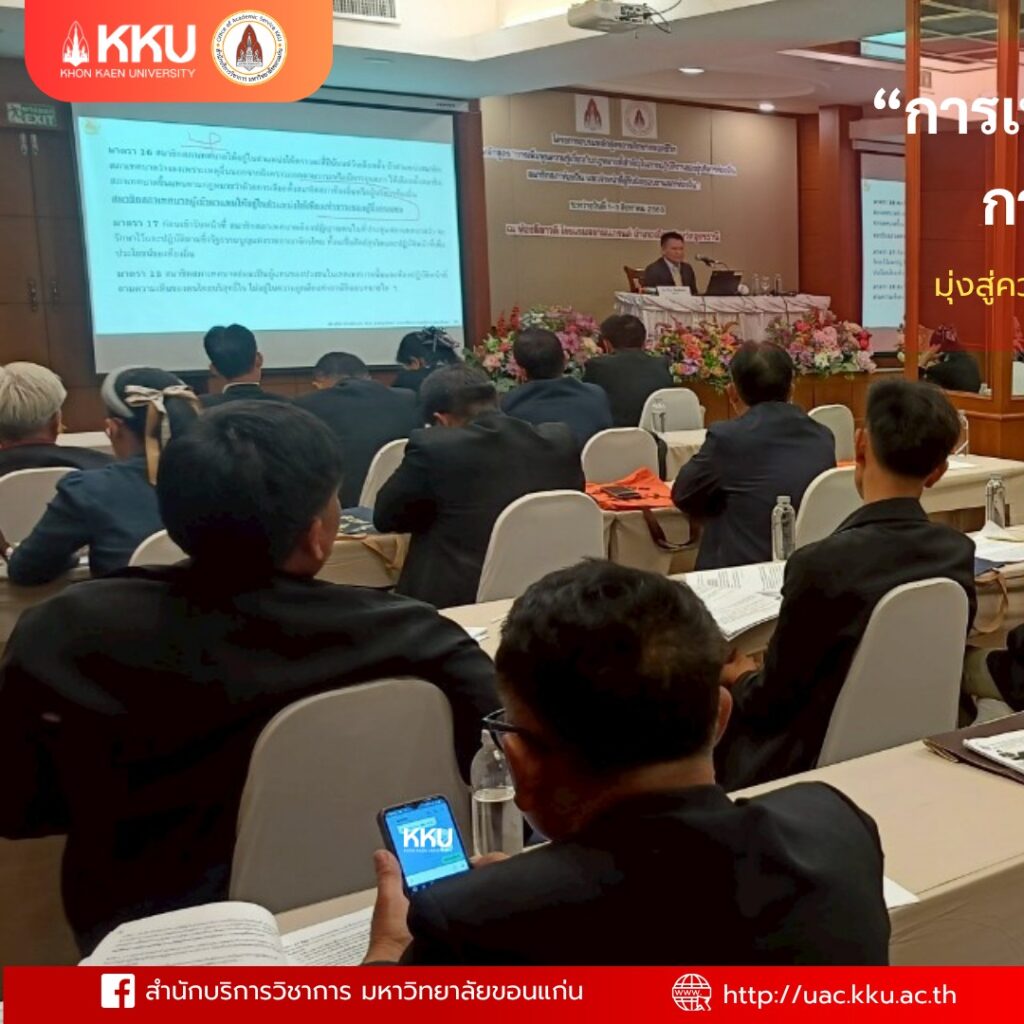 สำนักบริการวิชาการ มหาวิทยาลัยขอนแก่น จัดโครงการฝึกอบรมเชิงปฏิบัติการหลักสูตรการศึกษาตลอดชีวิต “การเพิ่มพูนความรู้เกี่ยวกับกฎหมายที่สำคัญในการปฏิบัติงานของผู้บริหารท้องถิ่น สมาชิกสภาท้องถิ่น และเจ้าหน้าที่ผู้รับผิดชอบงานสภาท้องถิ่น” ณ โรงแรมสยามแกรนด์ จังหวัดอุดรธานี วันที่ 1-3 สิงหาคม 2568