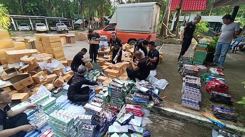 ทั้งสองกำลังลำเลียงกระสอบวัตถุต้องสงสัยจากรถยนต์กระบะตู้ทึบ ยี่ห้อโตโยต้า ไฮลักวีโก้ สีส้ม ทะเบียน ผย 1037 อุดรธานี เข้าบ้านพัก เจ้าหน้าที่จึงได้แจ้งเหตุผลการปฏิบัติและขอตรวจค้น ผลการตรวจค้นพบ บุหรี่ต่างประเทศหลบเลี่ยงภาษีจำนวน 19 กระสอบ/กล่อง รวม 60,541 ซอง ภายในรถและบ้านพักดังกล่าว ซึ่งผู้ต้องหาทั้งสองให้การยอมรับว่าของกลางทั้งหมดเป็นของตนจริง