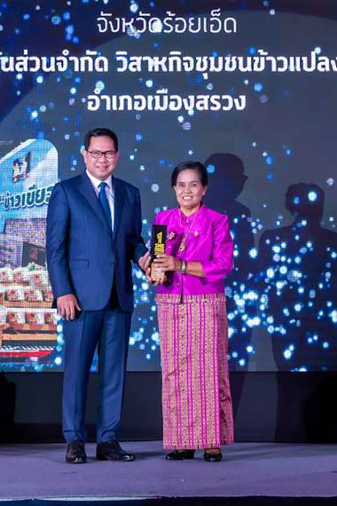 เมื่อวันจันทร์ที่ 18 สิงหาคม 2568 เวลา 18.00 น. ณ.โรงแรมเบสท์เวิส์เทิรน แวนด้า แจ้งวัฒนะ กรุงเทพฯ นางสมพร โยธะกา หุ้นส่วนผู้จัดการ ห้างหุ้นส่วนจำกัดวิสาหกิจชุมชนข้าวแปลงใหญ่เมืองสรวง เข้ารับรางวัลสุดยอด MSME ประจำจังหวัดร้อยเอ็ด จากนายฐิติพงศ์ เขียวไพศาล ประธานกรรมการบริหารสำนักงานส่งเสริมวิสาหกิจขนาดกลางและขนาดย่อม ประธานในพิธี โดยประธานกล่าวเปิดงานว่า “สสว. ตระหนักว่าการสร้างความเข้มแข็งให้กับ SMEs ต้องอาศัยการสนับสนุนที่เป็นระบบและครบวงจร ไม่เพียงแต่การให้เงินทุน แต่ยังรวมถึงการสร้างโอกาส การพัฒนาทักษะ การอำนวยความสะดวก และการเชื่อมโยงเครือข่ายผ่านหน่วยงานต่าง ๆ โดยจัดทำมาตรการสนับสนุนที่หลากหลาย ครอบคลุมตั้งแต่การเข้าถึงแหล่งเงินทุน การพัฒนาผู้ประกอบการ การส่งเสริมการตลาด ไปจนถึงการพัฒนาเทคโนโลยีและการลดอุปสรรคทางกฎหมาย”