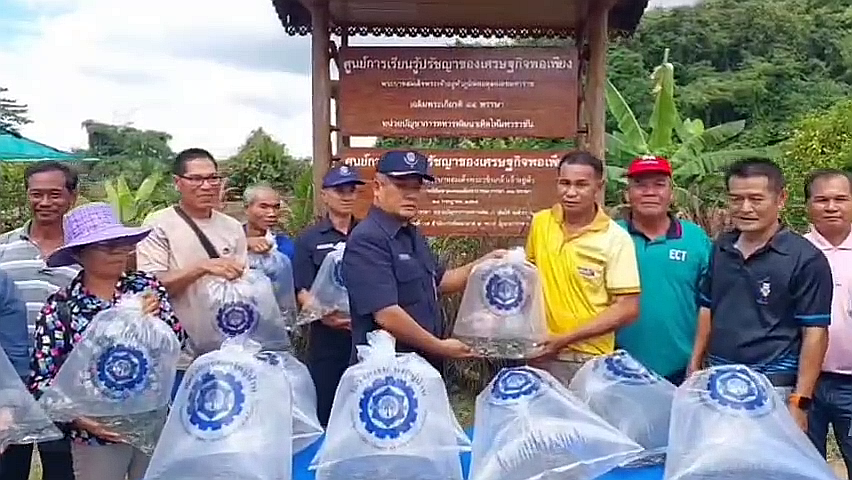 (มีคลิปข่าว)พันเอกณัฏฐชัย ปัญญาใส ผู้บังคับหน่วยพัฒนาการเคลื่อนที่สองสาม สำนักงานพัฒนาภาคสอง หน่วยบัญชาการทหารพัฒนา จัดกำลังพลหน่วยพัฒนาคุณภาพชีวิต ให้การต้อนรับประชาชน บ้านผากลางดง ตำบลธาตุ อ.เชียงคาน จังหวัดเลย จำนวน 50 คน เข้าศึกษาดูงานภายในศูนย์การเรียนรู้เศรษฐกิจพอเพียงเฉลิมพระเกียรติพระบาทสมเด็จพระวชิรเกล้าเจ้าอยู่หัว เสริมสร้างความรู้ ความเข้าใจเกี่ยวกับการดำเนินชีวิตตามหลักปรัชญาของเศรษฐกิจพอเพียง การอนุรักษ์สิ่งแวดล้อม และการใช้ทรัพยากรธรรมชาติอย่างรู้คุณค่า ในด้านการพัฒนาศักยภาพของคน ชุมชน และพื้นที่ ในพื้นที่เป้าหมายให้มีภูมิคุ้มกัน มีความมั่นคงแบบองค์รวม พร้อมที่จะเผชิญปัญหาในทุกมิติของความมั่นคง เพื่อให้คน ชุมชน มีความสุขอย่างยั่งยืน และพร้อมสนับสนุนการปฏิบัติการทางทหารในการนี้ หน่วยพัฒนาการเคลื่อนที่สองสาม สำนักงานพัฒนาภาคสอง ได้แจกจ่ายพันธ์ุปลานิลให้กับประชาชนที่เข้ามาศึกษาดูงาน จำนวน 100 ถุง จำนวน 50,000 ตัว เพื่อนำไปปล่อยลงในแหล่งน้ำสาธารณะไว้เป็นอาหารและนำไปจำหน่ายเป็นอาชีพเสริม เพื่อเป็นการลดภาระ ค่าใช้จ่ายภายในครัวเรือน พร้อมทั้งสร้างความมั่นคงทางด้านแหล่งอาหาร รวมถึงการพัฒนาองค์ความรู้ ให้ประชาชนสามารถพึ่งพาตนเองได้ ตามหลักปรัชญาเศรษฐกิจพอเพียง ณ ศูนย์การเรียนรู้เศรษฐกิจพอเพียง หน่วยพัฒนาการเคลื่อนที่สองสาม สำนักงานพัฒนาภาคสอง หน่วยบัญชาการทหารพัฒนา ตำบลท่าสวรรค์ อำเภอนาด้วง จังหวัดเลย
