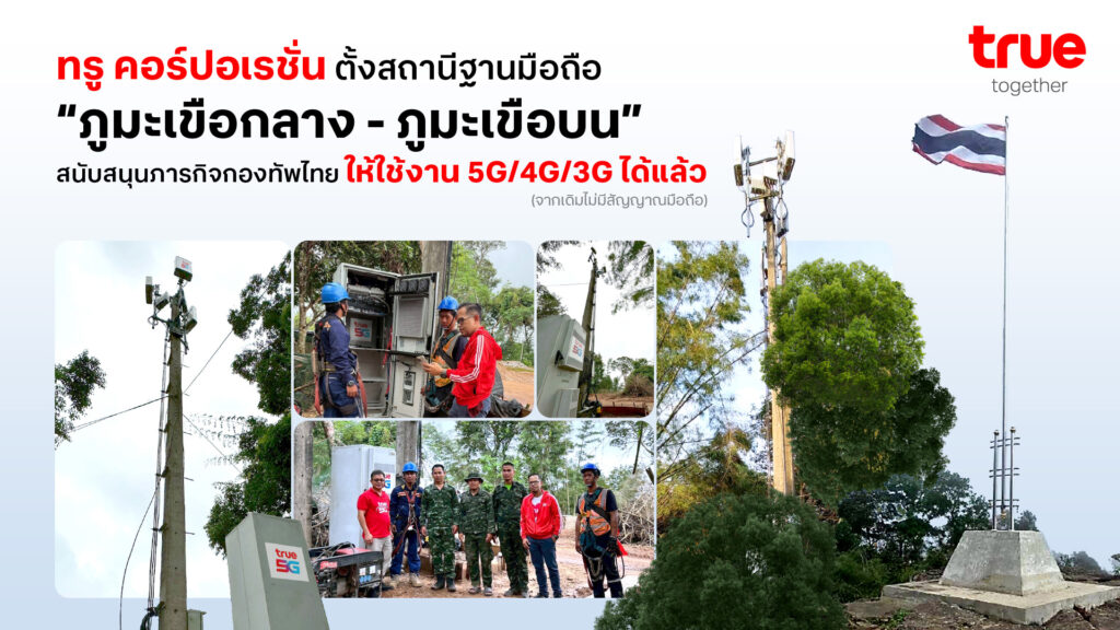 12 กันยายน 2568 – ทรู คอร์ปอเรชั่น ร่วมกับกองทัพไทย และสำนักงานคณะกรรมการกิจการกระจายเสียง กิจการโทรทัศน์ และกิจการโทรคมนาคมแห่งชาติ (กสทช.) ประกาศความพร้อมในการเปิดใช้งานสถานีฐานมือถือที่ “ภูมะเขือกลางและภูมะเขือบน” โดยเครือข่ายที่ติดตั้งครอบคลุมการใช้งาน 5G, 4G และ 3G รองรับการสื่อสารของหน่วยงานภาครัฐและกองทัพที่ปฏิบัติภารกิจในพื้นที่ภูมะเขือ ทั้งนี้ พื้นที่ดังกล่าวเดิมไม่มีสัญญาณสื่อสารมือถือ ทำให้การติดต่อสื่อสารของหน่วยงานเป็นไปอย่างจำกัด ทรู คอร์ปอเรชั่น จึงได้เร่งดำเนินการตามคำขอของภาครัฐในการเพิ่มสัญญาณเพื่อภารกิจความมั่นคงและปฏิบัติควบคู่ไปกับมาตรการควบคุมเสาสัญญาณของ กสทช.