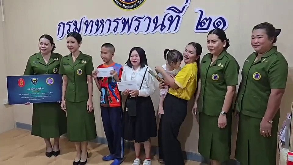 คุณกนกรัตน์ ทองคำ ประธานสมาคมแม่บ้านทหารบก สาขากรมทหารพรานที่ 21 พร้อมด้วยคณะสมาชิกแม่บ้านของหน่วย ได้นำความห่วงใยและความเอื้ออาทรไปสู่ครอบครัวกำลังพล โดยได้ร่วมกันมอบทุนยังชีพให้แก่บุตรของกำลังพลกองทัพบกที่มีความต้องการพิเศษ ประจำปี 2568 จำนวน 5 ราย ๆ ละ 5,000 บาท รวมเป็นเงินทั้งสิ้น 25,000 บาท พร้อมกันนี้ยังได้มอบสิ่งของเครื่องอุปโภค–บริโภคที่จำเป็นต่อการดำรงชีวิต เพื่อช่วยแบ่งเบาภาระค่าใช้จ่ายในเบื้องต้น และเป็นการสร้างความอุ่นใจให้กับครอบครัวของกำลังพล