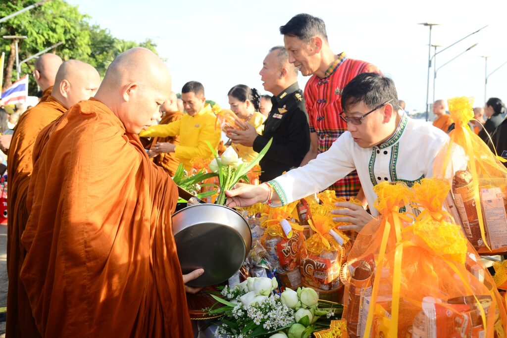 ชาวขอนแก่นร่วมพิธีทำบุญตักบาตรเทโวเนื่องในงานประเพณีออกพรรษา ลอยประทีปบูชา พุทธกตัญญู ประจำปี 2568