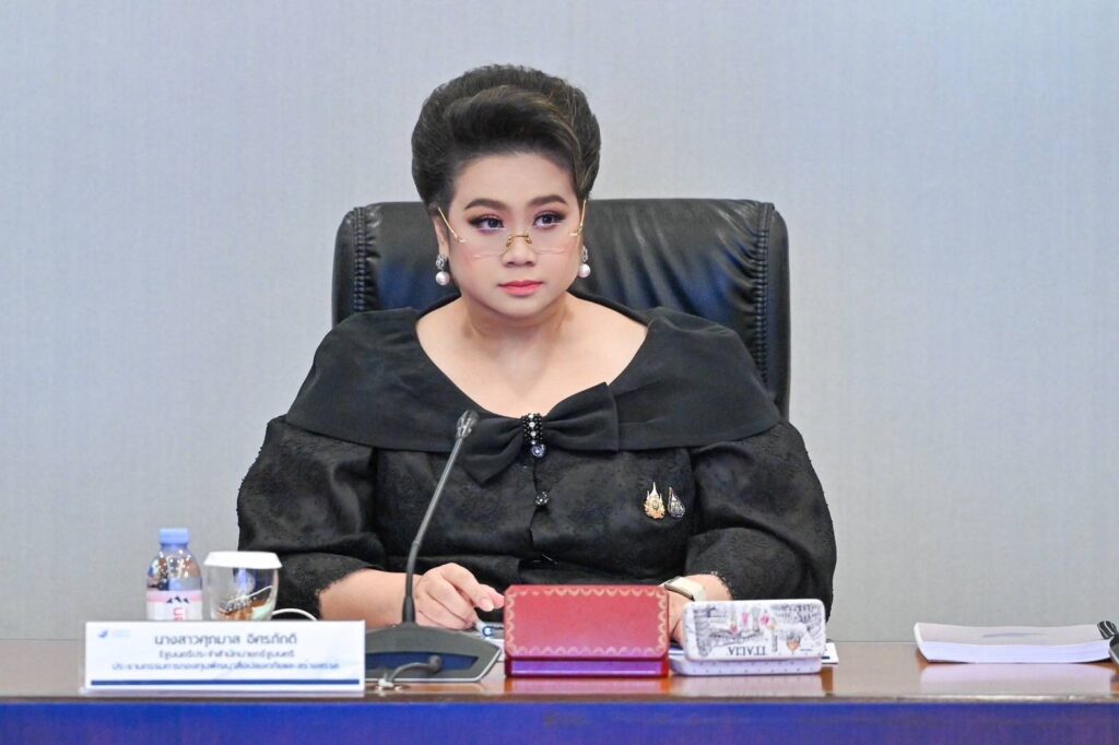 วันที่ 30 ตุลาคม 2568 เวลา 13.30 น. นางสาวศุภมาส อิศรภักดี รัฐมนตรีประจำสำนักนายกรัฐมนตรี ปฏิบัติราชการแทนนายกรัฐมนตรี ทำหน้าที่เป็นประธานคณะกรรมการกองทุนพัฒนาสื่อปลอดภัยและสร้างสรรค์ (กสส.) ครั้งที่ 4/2568 ณ ห้องประชุม 301 ตึกบัญชาการ 1 ทำเนียบรัฐบาล โดยมีนางสาวซาบีดา ไทยเศรษฐ์ รัฐมนตรีว่าการกระทรวงวัฒนธรรม รองประธานกรรมการ นายประสพ เรียงเงิน ปลัดกระทรวงวัฒนธรรม นายธนกร ศรีสุขใส ผู้จัดการกองทุนฯ และคณะกรรมการเข้าร่วมประชุม