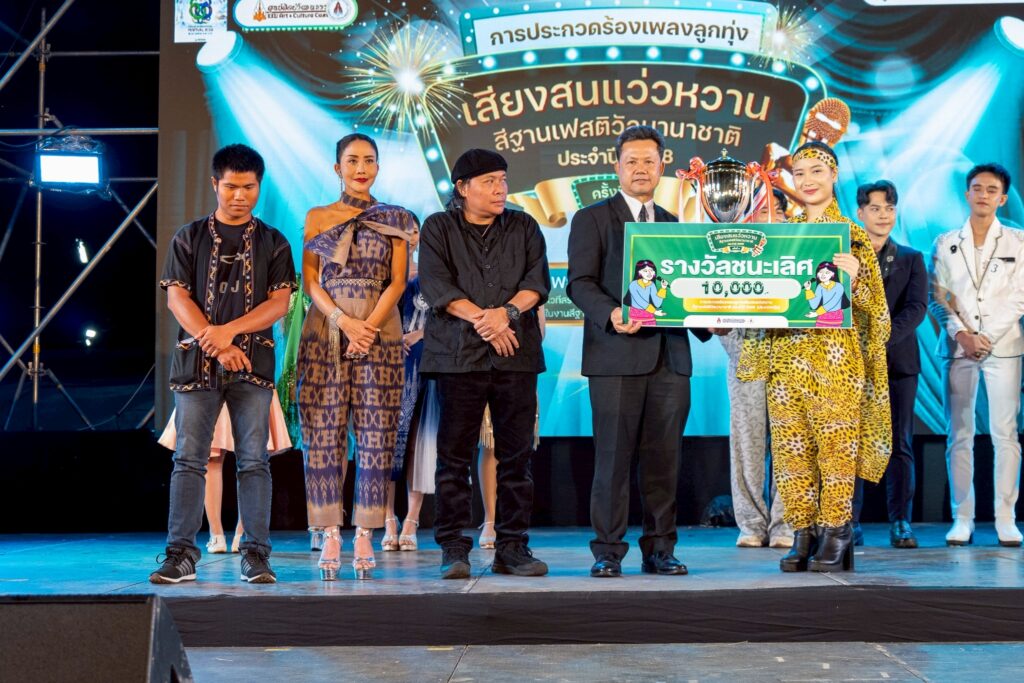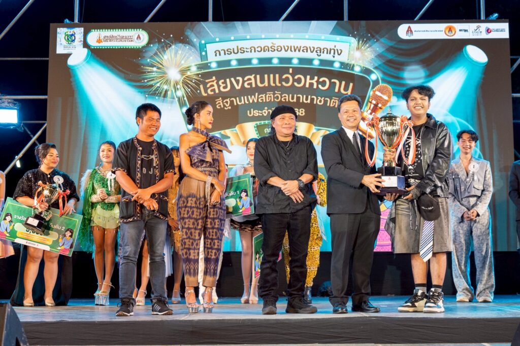 เมื่อวันที่ 4 พฤศจิกายน 2568 เวลา 19.00 น. ณ เวทีสร้างสรรค์ 2 ภายในงาน “สีฐานเฟสติวัลนานาชาติ 2025” มหาวิทยาลัยขอนแก่น ได้จัดการประกวดร้องเพลงลูกทุ่ง “เสียงสนแว่วหวานสีฐานเฟสติวัล” ปีที่ 4 รอบชิงชนะเลิศ บรรยากาศเป็นไปอย่างคึกคักและอบอุ่น โดยมีผู้เข้ารอบชิงชนะเลิศจากทั่วภูมิภาคอีสาน ร่วมแสดงความสามารถ ถ่ายทอดเสียงเพลงลูกทุ่งอย่างเต็มพลัง สร้างความประทับใจให้กับคณะกรรมการและผู้ชมที่มาร่วมให้กำลังใจอย่างล้นหลาม