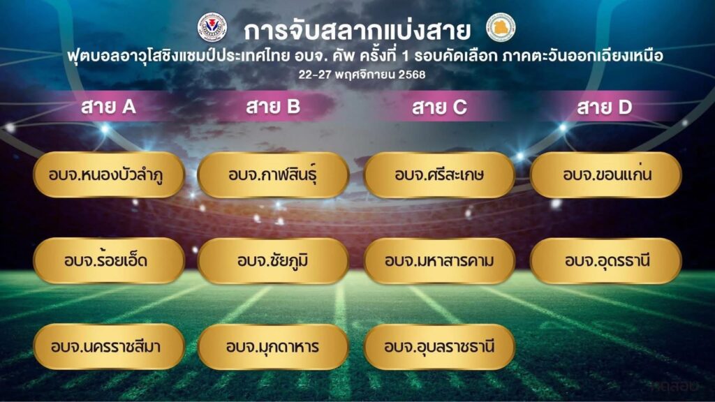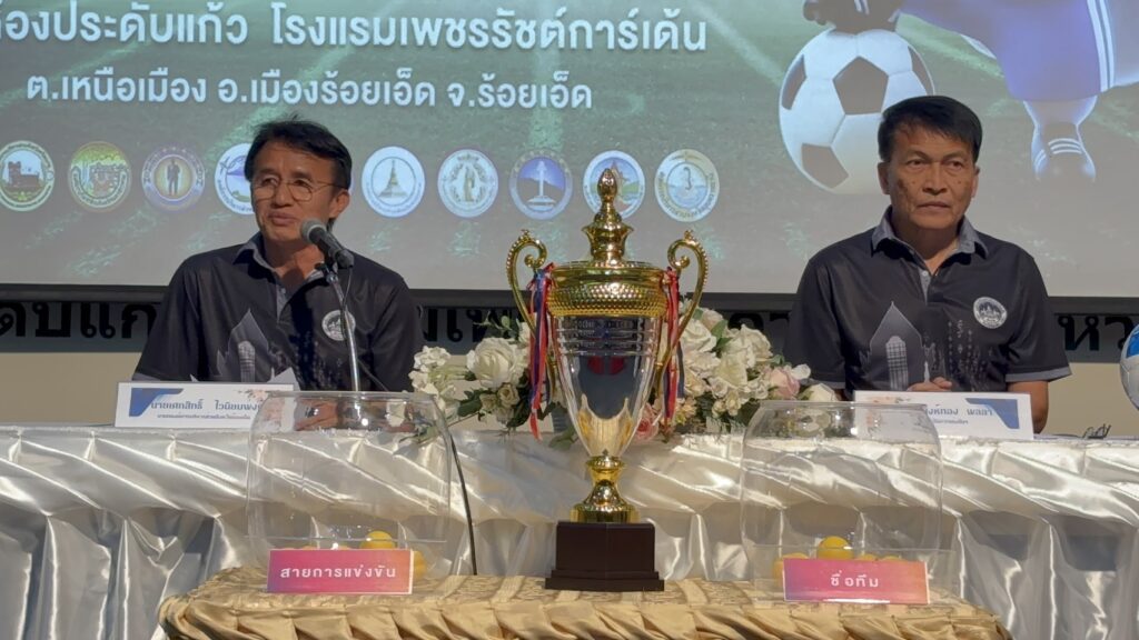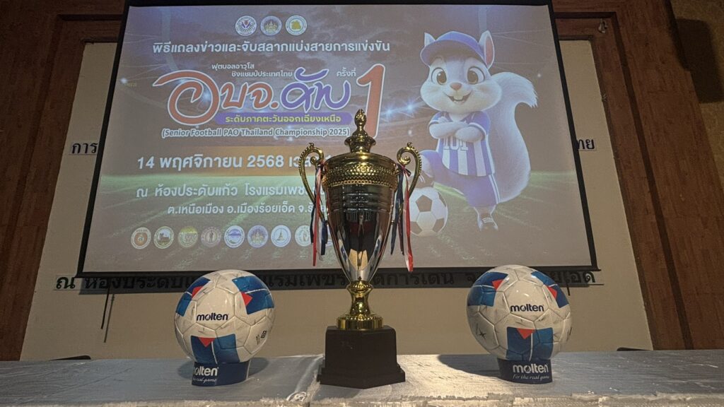 วันที่ 14 พ.ย. 2568 ที่ห้องประดับแก้ว โรงแรมเพชรรัชต์การ์เด้น จังหวัดร้อยเอ็ด มีการจัดงานแถลงข่าวและจับสลากแบ่งสายการแข่งขันฟุตบอลอาวุโส องค์การบริหารส่วนจังหวัด ชิงแชมป์ประเทศไทย “อบจ.คัพ” ครั้งที่ 1 ระดับภาคตะวันออกเฉียงเหนือ หรือ Senior Football PAO Thailand Championship 2025 โดยมีผู้แทนจากองค์การบริหารส่วนจังหวัดต่าง ๆ ในภาคอีสาน พร้อมคณะผู้ฝึกสอน นักกีฬา และสื่อมวลชนเข้าร่วมอย่างคับคั่ง