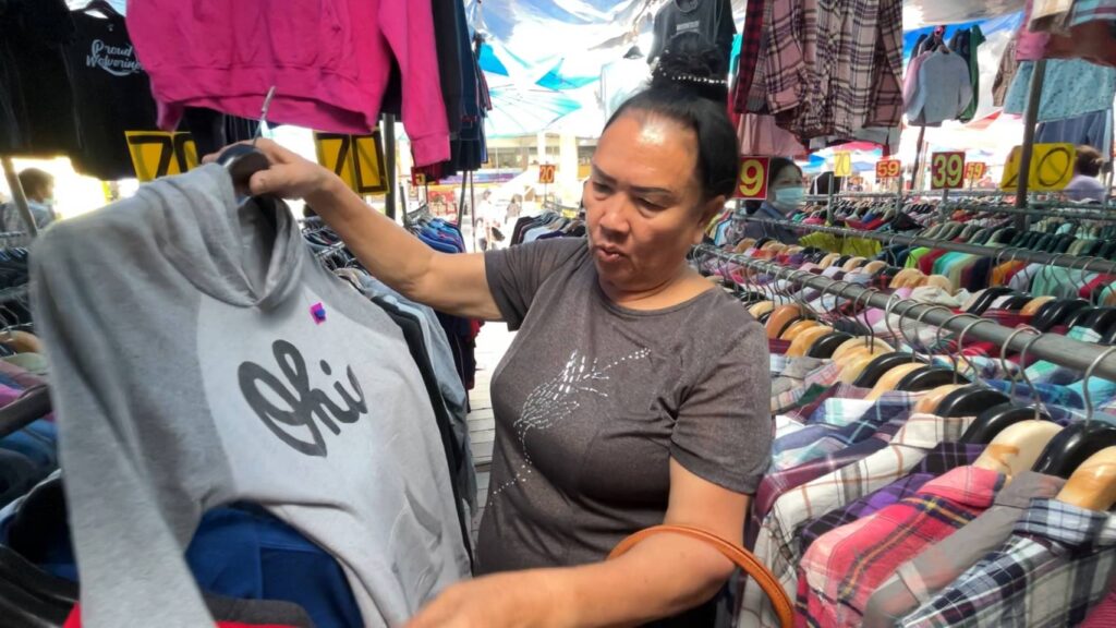 ” ส่วนใหญ่เสื้อที่ขายดีจะเป็นเสื้อฮูด สเวกเตอร์ เพราะใส่ได้ทุกเพศทุกวัย นักเรียน นักศึกษาใส่ได้หมด ใส่ได้ทุกช่วงฤดู ราคาขายเสื้อกันหนาวมือสองขายเริ่มต้นตัวละ 70 บาท แพงที่สุดในร้าน 100 บาท อย่างไรก็ตามถ้าเทียบช่วงนี้กับปีที่ผ่านมาปีนี้ ขายดีกว่าเพราะตามประกาศกรมอุตุนิยมวิทยา จะหนาวกว่าปีที่ผ่านมา คนเริ่มทยอยออกมาซื้อเสื้อใส่มากขึ้นและคึกคักกว่าปีที่แล้ว”