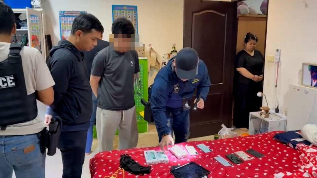 ซึ่งจากการตรวจค้นภายในห้องพักของผู้ต้องหา เจ้าหน้าที่ตรวจยึดของกลางจำนวนมาก ประกอบด้วย สมุดบัญชีธนาคารของบุคคลอื่นจำนวน 2 เล่ม 2 รายชื่อ ได้แก่ ธนาคารไทยพาณิชย์ สาขาตลาดมีนบุรี และธนาคารกรุงเทพ สาขาขอนแก่น , บัตรเอทีเอ็มธนาคารต่างๆ จำนวน 4 ใบ , โทรศัพท์สมาร์ทโฟนที่มีการผูกแอปพลิเคชันธนาคารเชื่อมโยงกับบัตรเอทีเอ็มที่ตรวจยึดได้ จำนวน 2 เครื่อง , โทรศัพท์สมาร์ทโฟนที่ยังไม่ผูกกับแอปพลิเคชันธนาคาร จำนวน 6 เครื่อง , สมุดจดรายละเอียดเกี่ยวกับบัญชีธนาคาร จำนวน 1 เล่ม , ซองซิม AIS (ใช้แล้ว) จำนวน 5 ซอง , โน้ตบุ๊ก จำนวน 1 เครื่อง และกล่องโทรศัพท์สมาร์ทโฟนเปล่า จำนวน 7 กล่อง