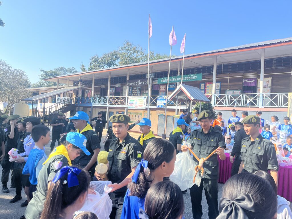 หน่วยฝึกนักศึกษาวิชาทหาร มณฑลทหารบกที่ 28จัดโครงการ “พี่ รด.ปันน้ำใจ ต้านภัยหนาว” ในพื้นที่ จังหวัดเลย พันโท สุริยา ศิลศิริวัฒน์ ผู้บังคับหน่วยฝึกนักศึกษาวิชาทหาร (นฝ.นศท.) มณฑลทหารบกที่ 28 เป็นประธานในกิจกรรม มอบผ้าห่มกันหนาว ตามโครงการ “พี่ รด.ปันน้ำใจ ต้านภัยหนาว” โดย พี่ๆนักศึกษาวิชาทหาร มณฑลทหารบกที่ 28 ได้ร่วมเคารพธงชาติ ร่วมกับน้องๆนักเรียน กิจกรรมเสาธง 5 นาที , เล่นเกมส์เสริมทักษะต่างๆ นอกจากนี้ หน่วยฝึกนักศึกษาวิชาทหาร มณฑลทหารบกที่ 28 พร้อมด้วยส่วนราชการในพื้นที่ ได้มอบผ้าห่มกันหนาวให้กับน้องๆนักเรียน ณ โรงเรียนบ้านนาวัวโพนงาม ต.ทรายขาว อ.วังสะพุง จังหวัดเลย เพื่อช่วยเหลือผู้ประสบภัยหนาว โดยเฉพาะนักเรียนในโรงเรียนที่ขาดแคลน ซึ่งมีความต้องการผ้าห่มกันหนาว เสื้อผ้า และอุปกรณ์กันหนาวอื่นๆ ให้กับนักเรียน ครู และชุมชนในพื้นที่ห่างไกล โดยมี นายเกียรติศักดิ์ นิพวงลา ผู้อำนวยการโรงเรียนบ้านนาวัวโพนงาม คณะครู นักเรียน ให้การต้อนรับ ทั้งนี้ หน่วยฝึกนักศึกษาวิชาทหาร (นฝ.นศท.) มณฑลทหารบกที่ 28 ได้นำผ้าห่มกันหนาวไปแจกจ่ายให้กับประชาชนในพื้นที่ ที่ประสบภัยหนาว และได้รับผลกระทบจากสภาพภูมิอากาศในห้วงฤดูหนาว นอกจากนี้หน่วยยังได้มอบผ้าห่มกันหนาว และของเล่น ให้กับนักเรียนในโรงเรียนบ้านนางัว สภาพอากาศในช่วงกลางวันอากาศจะหนาวเย็น อุณหภูมิต่ำสุด 17 องศา กลางคืนต่ำสุดอยู่ที่ 9-10 องศา ซึ่งเป็นนโยบายของผู้บัญชาการทหารบก (ผบ.ทบ.) ในการให้ความช่วยเหลือประชาชน ในหลายด้าน โดยเน้นการเตรียมความพร้อมของกองทัพ ในการช่วยเหลือด้านภัยพิบัติ รวมถึงการสนับสนุนนโยบายรัฐบาล เพื่อดูแลความเป็นอยู่ของประชาชน สร้างจิตสำนึกในการทำงาน เพื่อช่วยเหลือประชาชนในพื้นที่ที่ประสบภัยหนาวประชาชน สร้างจิตสำนึกในการทำงาน เสียสละกำลังทรัพย์เพื่อช่วยเหลือประชาชนในพื้นที่ทุรกันดารและเนื่องจากโรงเรียน เป็นชุมชนอยู่ในพื้นที่ห่างไกล ตั้งอยู่บนพื้นที่สูง มีอากาศหนาวเย็น
