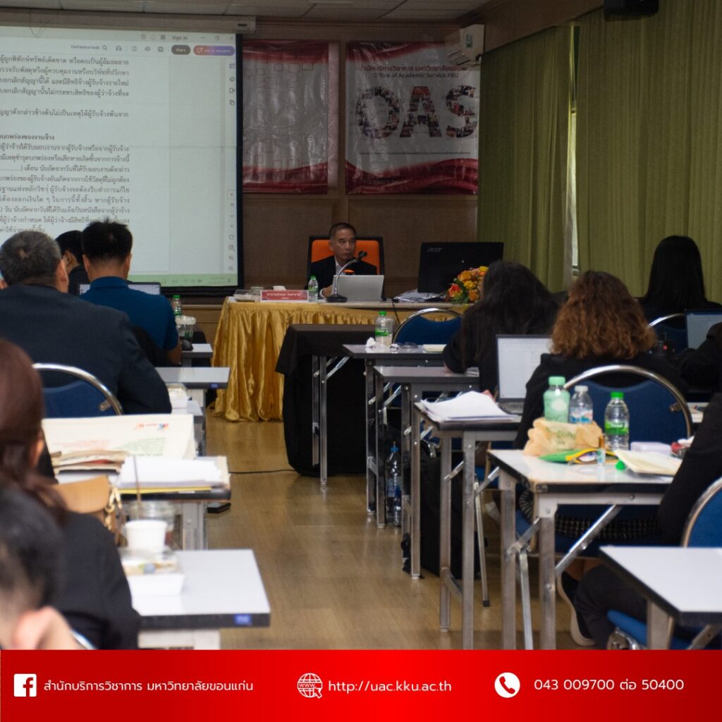 สำนักบริการวิชาการ มหาวิทยาลัยขอนแก่น จัดโครงการฝึกอบรมเชิงปฏิบัติการหลักสูตรการศึกษาตลอดชีวิต “บทบาทผู้บริหารและผู้ปฏิบัติในงานจัดซื้อจัดจ้างและบริหารสัญญาอย่างไรให้ถูกต้องและโปร่งใส” ระหว่างวันที่ 23-24 ธันวาคม 2568 ณ ห้องประชุมดุสิตา ชั้น5 สำนักบริการวิชาการ มหาวิทยาลัยขอนแก่น