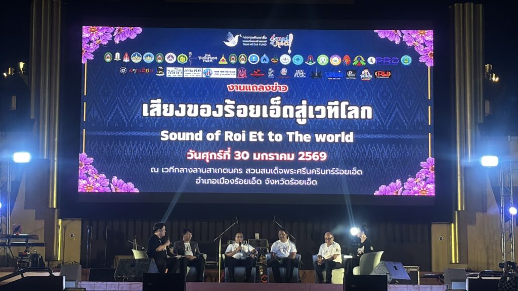 วันที่ 30 มกราคม 2569 ณ เวทีกลางลานสาเกตนคร สวนสมเด็จพระศรีนครินทร์ จังหวัดร้อยเอ็ดจัดแถลงข่าวโครงการเทศกาลดนตรี “เสียงของร้อยเอ็ดสู่เวทีโลก (Sound of Roi-Et to The World)” โดยมีผู้บริหาร ภาคการศึกษา ศิลปินแห่งชาติ และคณะผู้จัดโครงการ งานสองคืนแห่งประสบการณ์ดนตรีที่รวม ศิลปินระดับประเทศ หมอลำร่วมสมัย ดนตรีฟิวชัน พลังคนรุ่นใหม่จากสถาบันการศึกษาทั่วภาคอีสาน ก่อนเริ่มการแถลงข่าว มีการแสดงดนตรีพื้นบ้านจากครูเพลงและศิลปินชื่อดัง ได้แก่ พ่อครูทรงศักดิ์ ประทุมสินธุ์, แม่ครูกฤษณา วรรณสุทธิ์, อาจารย์คำเม้า พิณพระอินทร์, ต๊ะ มิสเตอร์แคน และทิวลี่ คนไม่ขาดแคน สร้างบรรยากาศคึกคักและสะท้อนอัตลักษณ์ดนตรีอีสานอย่างชัดเจน