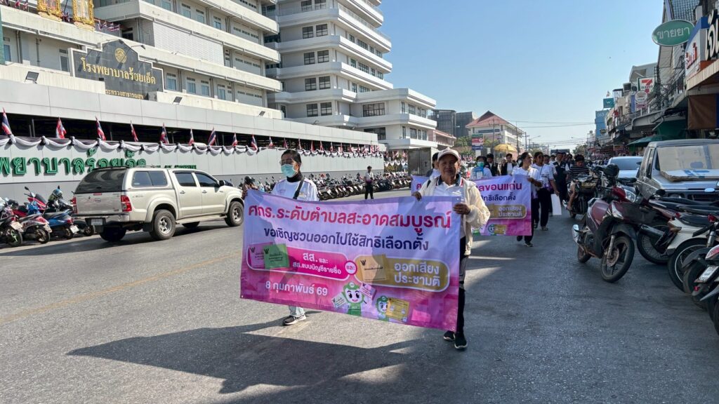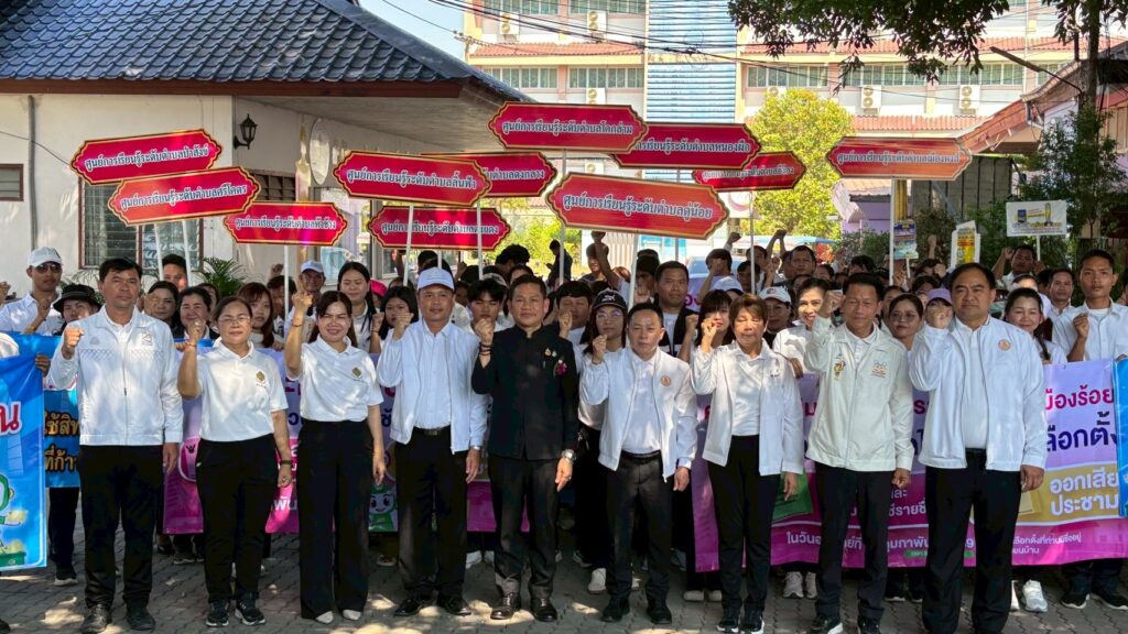 วันที่ 5 ก.พ.69 ที่ สำนักงานส่งเสริมการเรียนรู้ ประจำจังหวัดร้อยเอ็ด นายพิชัยยา ตุระซอง รองผู้ว่าราชการจังหวัดร้อยเอ็ด เป็นประธานเปิดการเดินรณรงค์เ“สร้างสรรค์ประเทศไทย พร้อมใจออกไปเลือกตั้ง” ในวันที่ 8 ก.พ.69 โดยมีนายวรรณวิจักษณ์ กุศล ผู้อำนวยการสำนักงานส่งเสริมการเรียนรู้ ประจำจังหวัดร้อยเอ็ด (สกร.ร้อยเอ็ด ) นางพิศมัย ชมภูบุตร ผอ.สกร.เมืองร้อยเอ็ด บุคลากร สกร. นำเจ้าหน้าที่ และนักเรียน สกร.ในเขตอำเภอเมืองร้อยเอ็ด ร่วมขับเคลื่อนเดินรณรงค์ เชิญชวนชาวร้อยเอ็ด“สร้างสรรค์ประเทศไทย พร้อมใจออกไปเลือกตั้ง” เพื่อส่งเสริมประชาธิปไตยและกระตุ้นให้ประชาชนตระหนักถึงความสำคัญของการใช้สิทธิ์เลือกตั้ง