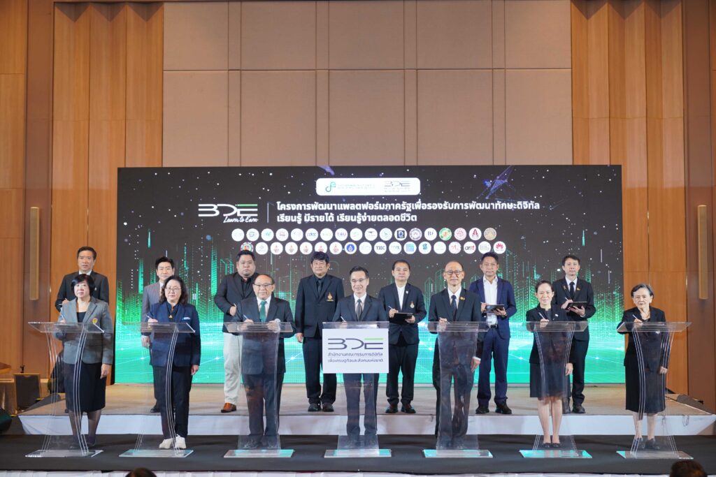 (25 กุมภาพันธ์ 2569) กระทรวงดิจิทัลเพื่อเศรษฐกิจและสังคม โดยสำนักงานคณะกรรมการดิจิทัลเพื่อเศรษฐกิจและสังคมแห่งชาติ (BDE : National Board of Digital Economy and Society) จัดงานแถลงข่าวเปิดตัวและพิธีลงนามบันทึกความเข้าใจ (MOU) “โครงการพัฒนาแพลตฟอร์มภาครัฐเพื่อรองรับการพัฒนาทักษะดิจิทัล เรียนรู้ มีรายได้ เรียนรู้ง่ายตลอดชีวิต หรือ BDE Learn to Earn” ณ ห้องประชุม Asawin Ballroom A โรงแรม Asawin Grand Convention กรุงเทพฯ โดยมีนายเวทางค์ พ่วงทรัพย์ เลขาธิการคณะกรรมการดิจิทัลเพื่อเศรษฐกิจและสังคมแห่งชาติ เป็นประธานในพิธีเปิด พร้อมด้วยนางสาวพลอยรวี เกริกพันธ์กุล ผู้อำนวยการกองขับเคลื่อนดิจิทัลเพื่อสังคม กล่าวรายงานวัตถุประสงค์และแนวทางดำเนินโครงการ โดยผู้เข้าร่วมงานมาจากทั้งหน่วยงานภาครัฐ ภาคเอกชน สถาบันการศึกษา และสื่อมวลชน