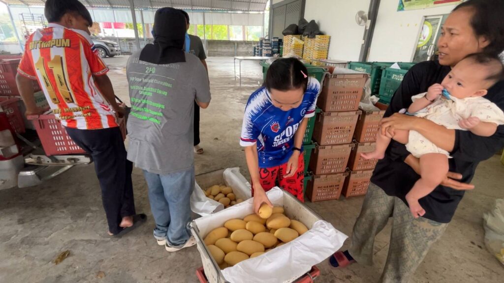 นายสุธีย์ กล่าวว่า กลุ่มมีสมาชิกอยู่จำนวน 40 ครอบครัวซึ่งปลูกมะม่วงน้ำดอกไม้สีทองและช่วงนี้เป็นช่วงเก็บผลผลิต ส่งขายต่างประเทศ โดยจะมีรถขนส่งมารับที่โรงคัด จำนวน 5 บริษัทฯ ซึ่งทุกบริษัทฯ ได้ทำสัญญา และระบุวันเวลามารับมะม่วงเรียบร้อยแล้ว ซึ่งในเดือน มี.ค. จะเก็บผลผลิตสัปดาห์ละ 1 ครั้ง โดยจะมีรถขนส่งมาคัดเอามะม่วงที่โรงคัด และในเดือนเม.ย.จะมีผลผลิตออกจำนวนมาก กลุ่ม จะทำการคัด 2 วันต่อครั้ง และรถขนส่งก็จะมารับมะม่วงตามวันเวลาที่กำหนด และยอมรับว่าขณะนี้มีความวิตกกังวลเป็นอย่างมาก เพราะทุกพื้นที่ กำลังประสบปัญหาเรื่องน้ำมัน ช่วงนี้เป็นช่วงที่ผลผลิตออกสู่ท้องตลาด ปีที่ผ่านมาก็เป็นปกติ มีรถขนส่งมารับมะม่วงจากสวนมทาที่โรงคัด จากนั้นจะมีรถขนส่งมารับจากโรงคัดออกไปส่งที่บริษัทส่งออกที่อยู่ในกรุงเทพฯ ก่อนที่จะนำส่งออกไปยังต่างประเทศ ซึ่งผลผลิตมะม่วงในปีนี้ ชาวสวนเริ่มเก็บทาตั้งแต่ต้นเดือนแล้ว โดยยังไม่มีผลกระทบอะไร แต่ในช่วงกลางเดือนเริ่มมีปัญหา เพราะเกิดสงครามในตะวันออกกลาง แล้วก็เป็นช่วงที่ชาวสวนกำลังเก็บมะม่วงแก่จัดแล้วส่งขายได้ โดยเฉพาะในช่วงต้นเดือนเมษายน ที่ใกล้จะถึง ไปจนถึงกลางเดือนพฤษภาคม มะม่วงจะแก่จัด ชาวสวนก็จะเก็บมะม่วงเพิ่มมากขึ้น จึงวิตกกังวลว่าจะมีการปิดสายการบินหรือไม่ เพราะเคยเจอเหตุการณ์ในลักษณะนี้เมื่อปี 2560 พอเกิดสงรามในครั้งนี้ จึงวิตกว่าจะซ้ำรอยเดิมอีกหรือไม่ แต่ปรากฏว่า สายการบินไม่ปิด ก็โล่งใจ
