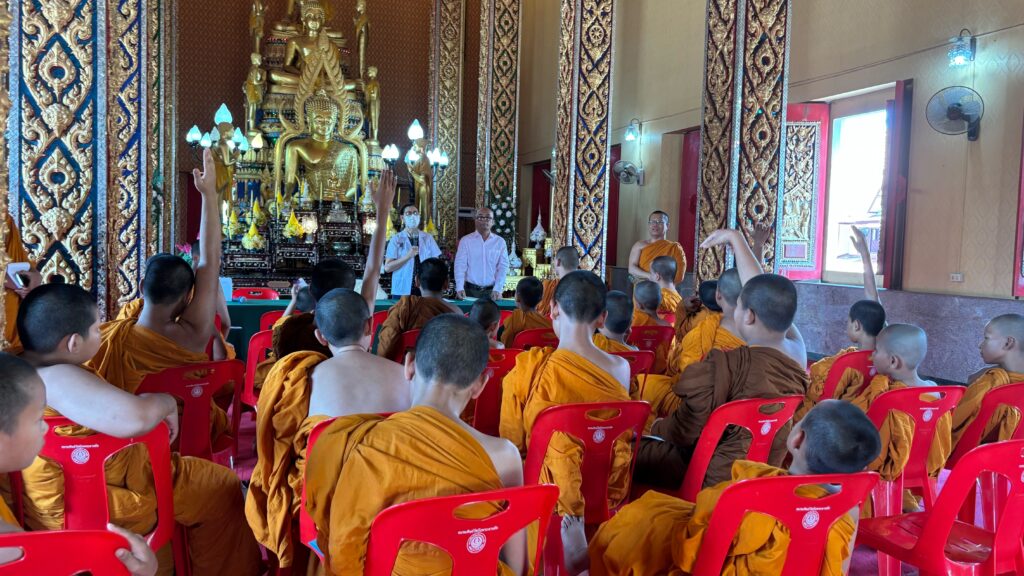 ภายในกิจกรรมมีการให้ความรู้เกี่ยวกับสารพิษในบุหรี่และบุหรี่ไฟฟ้า ผลกระทบต่อสุขภาพทั้งระยะสั้นและระยะยาว รวมถึงแนวทางการป้องกันและการสื่อสารสร้างความตระหนักรู้ในชุมชน โดยมีการแจกเอกสารความรู้และสื่อประชาสัมพันธ์ให้ผู้เข้าร่วมได้นำไปศึกษาเพิ่มเติม พบว่าพระภิกษุและสามเณรให้ความสนใจในการอบรมเป็นอย่างดี มีการตั้งใจรับฟังและศึกษาข้อมูลจากเอกสารประกอบ ซึ่งสะท้อนถึงความสำคัญของการปลูกฝังความรู้ด้านสุขภาพในกลุ่มศาสนบุคคล อันจะมีบทบาทสำคัญในการเป็นแบบอย่างที่ดีแก่เยาวชนและประชาชนในสังคม