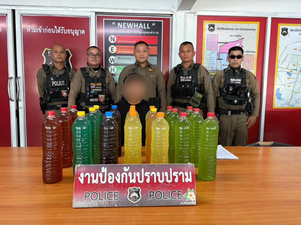เมือเวลา 16.00 น.วันที่ 30 เม.ย.2569พ.ต.อ.ยศวัจน์ แก้วสืบธัญนิจ ผกก.สภ.เมืองขอนแก่น พร้อมด้วย พ.ต.ท.เมธี ศรีวันนา รอง ผกก.(ป.)สภ.เมืองขอนแก่น นำกำลังเจ้าหน้าที่สายตรวจ เปิดปฏิบัติการเชิงรุก เข้าตรวจสอบร้านต้องสงสัยบริเวณ ถนนหลังมอ (มหาวิทยาลัยขอนแก่น) ต.ศิลา อ.เมือง จ.ขอนแก่น หลังสืบทราบว่าลักลอบจำหน่ายน้ำกระท่อมให้กับเด็กและเยาวชนอย่างผิดกฎหมาย