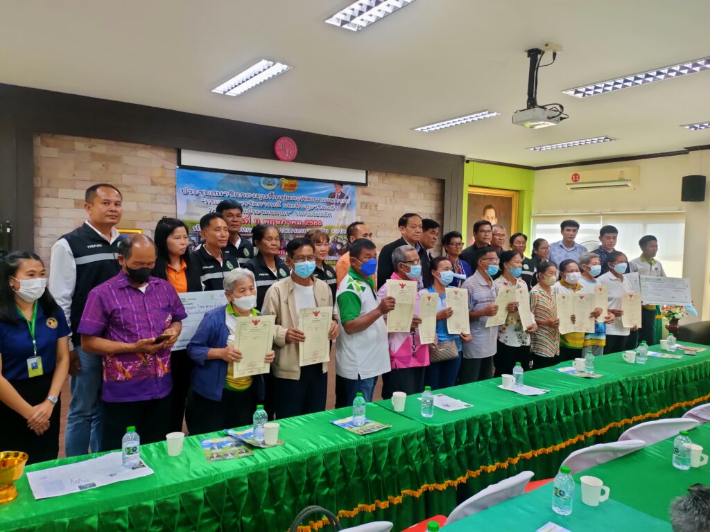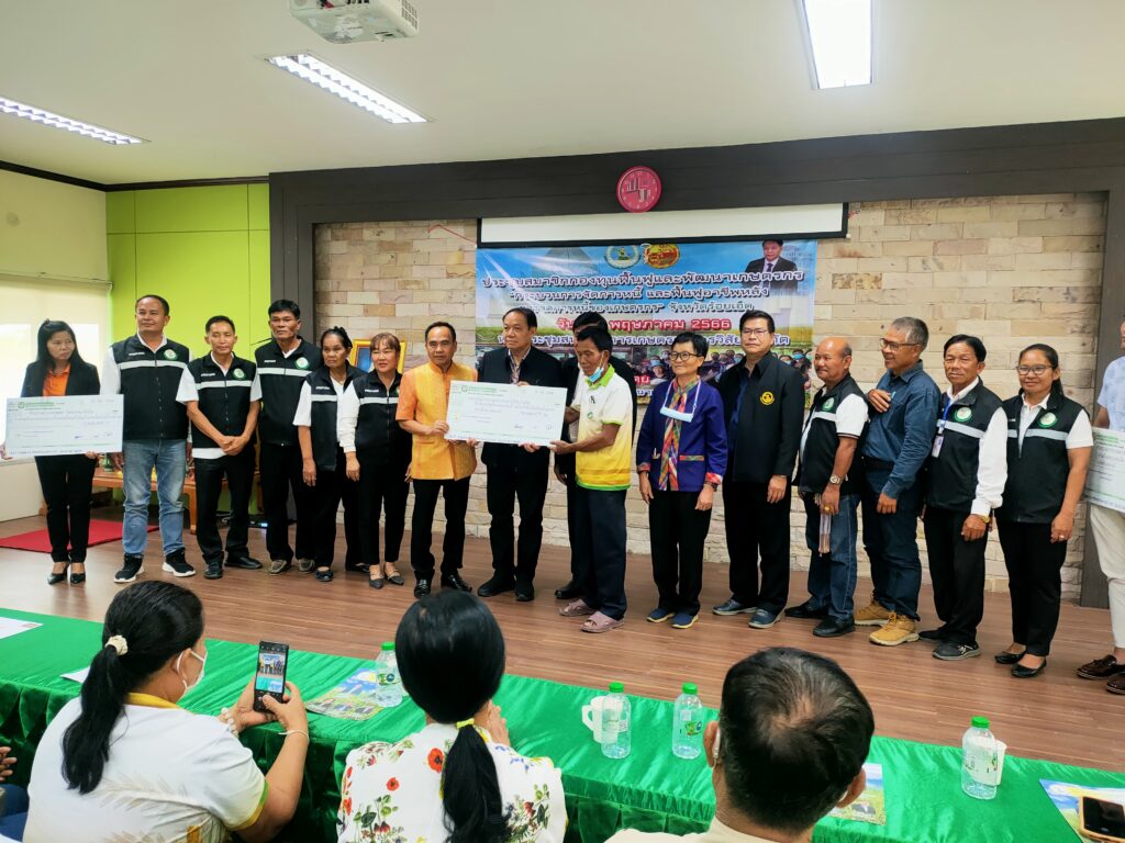 วันพฤหัสบดี ที่ 11 พฤษภาคม 2566 เวลา 13.30 น. ณ ห้องประชุมสหกรณ์การเกษตรเกษตรวิสัย จำกัด นายสไกร พิมพ์บึง เลขาธิการสำนักงานกองทุนฟื้นฟูและพัฒนาเกษตรกร (กฟก.) ประธานเปิดการประชุมชี้แจงการจัดการหนี้ การฟื้นฟูอาชีพหลังการจัดการหนี้ของสมาชิกองค์กร สำนักงานกองทุนฟื้นฟูและพัฒนาเกษตรกร พร้อมมอบโฉนดที่ดินทำกินคืนให้กับพี่น้องประชาชน โดยมีนายจารึก บุญพิมพ์ ประธานกรรมการจัดการหนี้ของเกษตรกร นางบุญเกิด ภานนท์ ผู้จัดการสหกรณ์การเกษตรเกษตรวิสัย ดร.ประจักษ์ บุญการพิมพ์ นายสำเริง ปานชาติ ท่านผู้แทนเกษตรกรจังหวัดร้อยเอ็ด และสมาชิกองค์กรเกษตรกร ร่วมเป็นสักขีพยาน ดำเนินงานโดยคณะอนุกรรมการกองทุนฟื้นฟูและพัฒนาเกษตรกรและสำนักงานกองทุนฟื้นฟูฯ สาขาจังหวัดร้อยเอ็ด