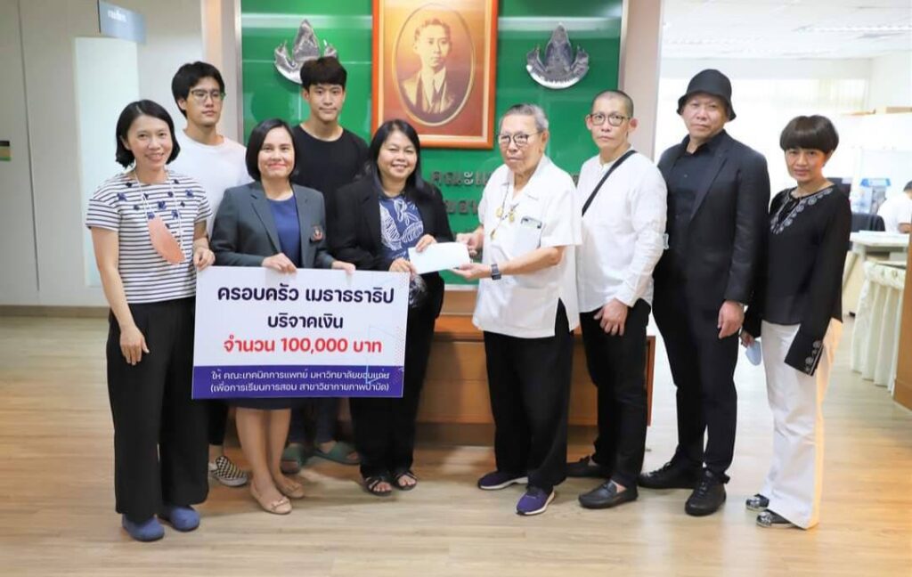 เมื่อวันที่ 15 มิย.2566 ที่ โรงพยาศรีนครินทร์ รศ.นพ.อภิชาติ จิระวุฒิพงศ์ คณบดีคณะแพทยศาสตร์ มหาวิทยาลัยขอนแก่น และ ศ.นพ.ทรงศักดิ์ เกียรติชูสกุล ผู้อำนวยการโรงพยาบาลศรีนครินทร์ รับมอบเงินบริจาคจำนวน 300,000 บาท ที่บริจาคในนามครอบครัว “เมธาธราธิป” เพื่อสมทบกองทุนวันศรีนครินทร์ ในพระราชูปถัมภ์ สมเด็จพระกนิษฐาธิราชเจ้ากรมสมเด็จพระเทพพระรัตนราชสุดาฯ สยามบรมรากุมารี และบริจาคเงิน 200,000 บาท เพื่อสมทบเข้ากองทุนศูนย์หัวใจสิริกิติ์ ภาคตะวันออกเฉียงเหนือ และบริจาคเงิน 100,000 บาท เพื่อการเรียนการสอน สาขาวิชากายภาพบำบัด คณะเทคนิคการแพทย์ มหาวิทยาลัยขอนแก่น เพื่อนำไปใช้ตามวัตถุประสงค์ของแต่ละองทุนต่อไป.