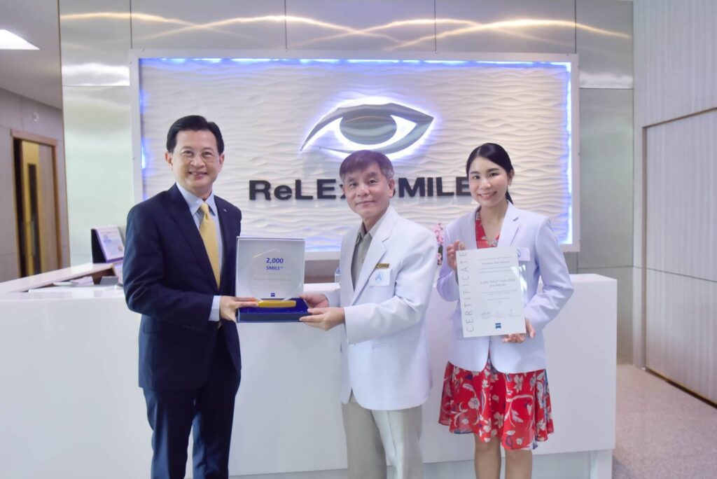 มาตรฐานยอดเยี่ยม: นพ.สมชาย กิตติพงษ์หรรษา ประธานกรรมการบริหาร รพ.ขอนแก่น ราม พร้อมด้วย พญ.จิรวดี กิตติพงษ์หรรษา จักษุแพทย์ ศูนย์เลสิค รพ.ขอนแก่นราม รับมอบรางวัล “SMILE Ambassador Center 2023” จากนายธีระพงษ์ บุญรอดชู กรรมการผู้จัดการบริษัท Carl Zeiss Meditec (ประเทศไทย) โดยรางวัลดังกล่าวเป็นรางวัลสำหรับศูนย์เลสิคที่ทำการรักษาด้วยวิธี ReLEx SMILE มากที่สุดในภาคอีสาน และเป็นศูนย์เลสิคที่ได้มาตรฐานยอดเยี่ยม ด้วยการใช้เทคโนโลยีจาก Carl Zeiss Meditec ซึ่งได้รับความไว้วางใจจากลูกค้าที่ต้องการแก้ปัญหาสายตาสั้น เอียง ด้วยวิธี SMILE กว่า 2,000 ราย ในปีที่ผ่านมา