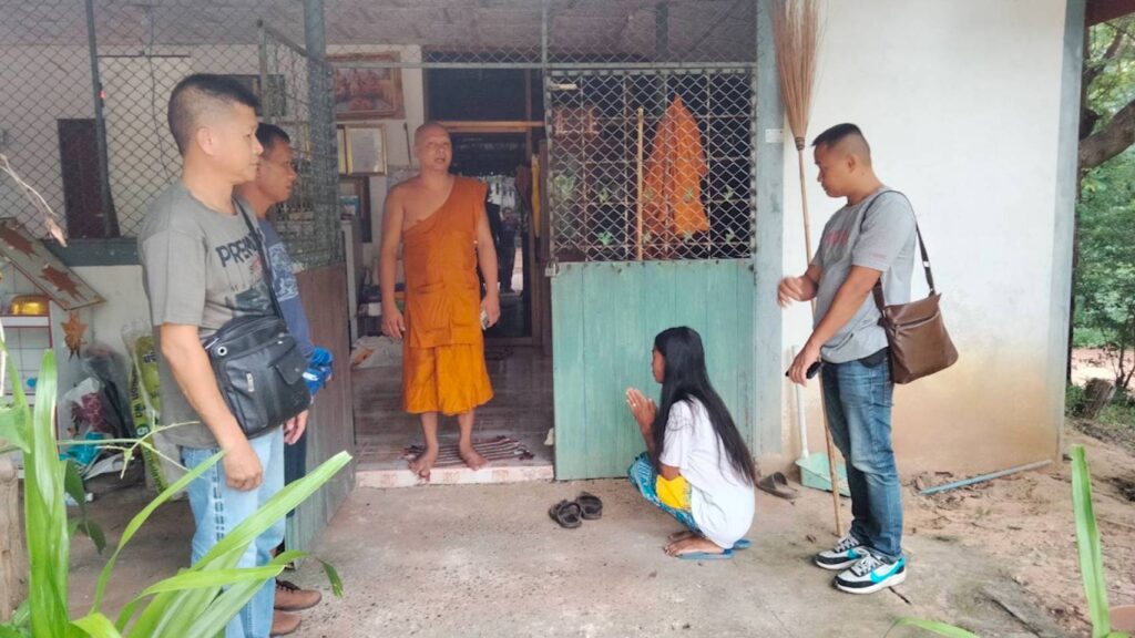 “เจ้าหน้าที่ชุดสืบสวนได้ออกสืบสวน ทราบว่าผู้กระทำผิดคือนางนันทิยา ฉิมมาลี อายุ 30 ปี อยู่บ้านเลขที่ 52 ม.2 ต.น้ำพอง อ.น้ำพอง จ.ขอนแก่น จึงได้ติดตามไปพบตัวผู้ต้องหาที่บ้านพัก จากการสอบถามปากคำรับว่าเป็นผู้ต้องหาที่กระทำผิดตามปรากฎในภาพวงจรปิด จึงได้ให้พาไปนำชี้ที่เกิดเหตุ และจุดที่นำทรัพย์สินสิ่งของไปทิ้งไว้บริเวณป่าหลังวัด”