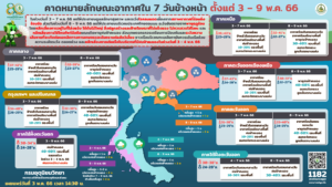 อนึ่ง พายุไต้ฝุ่น ?เซาลา? (SAOLA) บริเวณมหาสมุทรแปซิฟิกหรือด้านตะวันออกเฉียงเหนือของประเทศฟิลิปปินส์ คาดว่าจะเคลื่อนลงสู่ทะเลจีนใต้ตอนบน ในช่วงวันที่ 30 ส.ค. ? 1 ก.ย. 66 นี้ และจะเคลื่อนขึ้นฝั่งทางตะวันออกเฉียงใต้ของประเทศจีน ในช่วงวันที่ 2 ? 4 ก.ย. 66 โดยพายุนี้ไม่ส่งผลกระทบต่อลักษณะอากาศของประเทศไทยโดยตรง ขอให้ผู้ที่จะเดินทางไปยังบริเวณดังกล่าวตรวจสอบสภาพอากาศก่อนออกเดินทางในช่วงวันและเวลาดังกล่าวไว้ด้วย