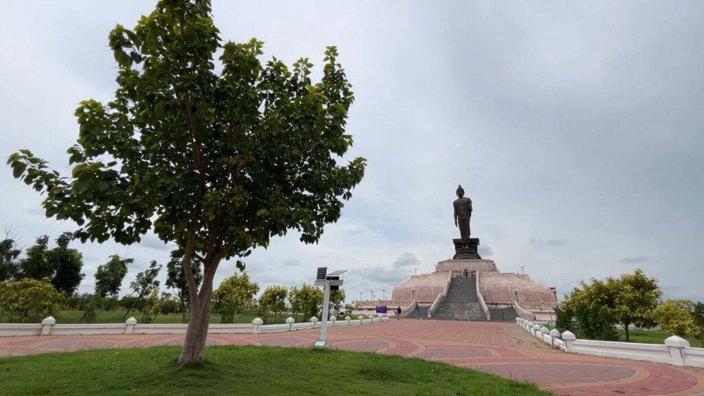 “ พุทธมณฑลอีสาน จ.ขอนแก่น ตั้งอยู่ในเขต ต.ศิลา และ ต.สำราญ อ.เมืองขอนแก่น เป็นสถานที่สำคัญทางพระพุทธศาสนา มีลักษณะเดียวกันกับพุทธมณฑล จ.นครปฐม องค์พระประธาน เป็นพระพุทธรูปหล่อสำริด ปางลีลา โดยมีต้นแบบในลักษณะเดียวกันกับพระศรีศากยะทศพลญาณ ประทับยืนขนาดใหญ่ประดิษฐานอยู่อย่างโดดเด่น โดยจัดสร้างขึ้นเพื่อเป็นการสนับสนุนนโยบายของรัฐตามมติเถรสมาคม ที่ต้องการจะสร้างพุทธมณฑลให้มีแพร่หลายในภูมิภาคต่างๆ สอดรับกับโครงการร่วมเฉลิมฉลองการทรงสิริราชสมบัติครบ 60 ปีของในหลวงรัชกาลที่ 9 ในปี 2549 และร่วมเฉลิมพระเกียรติในโอกาสมหามงคลเฉลิมพระชนมพรรษา 7 รอบ 84 พรรษา”