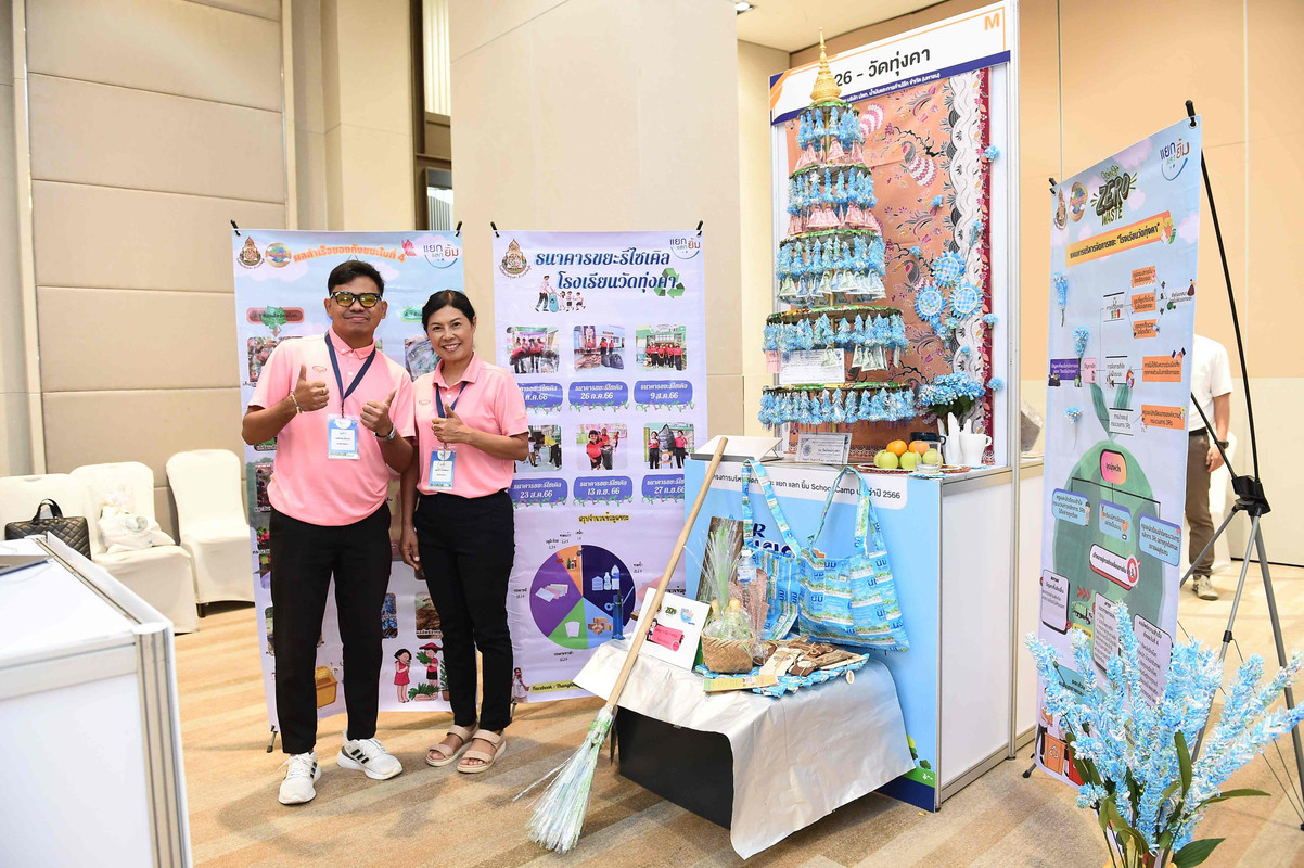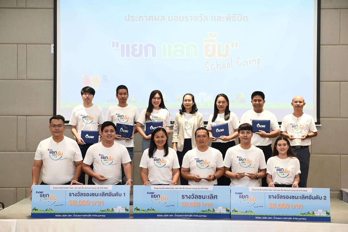 นางนุชยา จันทรุเบกษา ผู้จัดการฝ่ายสื่อสารองค์กร บริษัท ปตท. น้ำมันและการค้าปลีก จำกัด (มหาชน) หรือOR มอบรางวัลและแสดงความยินดีแก่คณะครูผู้ชนะการประกวดการบริหารจัดการขยะ โครงการ “แยก แลก ยิ้ม School Camp”ประจำปี 2566 ณ โรงแรม ทีเค พาเลซ แอนด์ คอนเวนชั่น กรุงเทพฯ