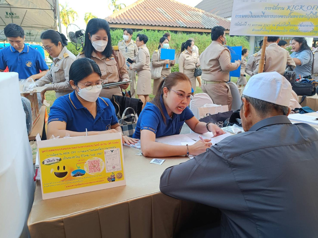 เมื่อวันที่ 15 มกราคม 2567 นายวัฒนา มังธิสารรองเลขาธิการสำนักงานการปฏิรูปที่ดินเพื่อเกษตรกรรม ได้ตรวจความพร้อม และความเรียบร้อยของบูธฝ่ายติดตามประเมินผลการจัดงาน จัดกิจกรรมขับเคลื่อน (Kick Off) การออกโฉนดเพื่อการเกษตรเพื่อส่งมอบเป็นของขวัญปีใหม่ พ.ศ. 2567