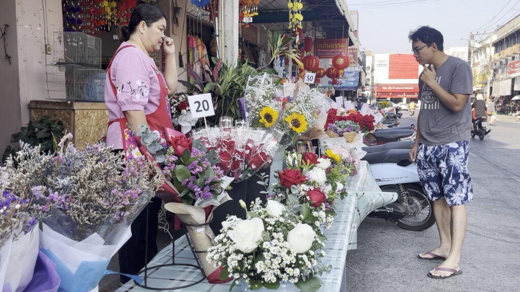“ปีที่แล้วดอกกุหลาบกำละ 450 บาท มี 25 ดอก ปีนี้เหลือกำละ 200 บาท ทำให้ราคาจำหน่าบปีนี้เริ่มต้นดอกละ 20 บาท สูงสุดคือ100 บาท แต่จากการสังเกตุจะพบว่าปีนี้ลูกค้าหันมาสั่งดอกทานตะวันมอบให้คนที่รักมากกว่า ซึ่งราคาดอกทานตะวันเริ่มต้นดอกละ 50 บาท ถ้าเป็นช่อเริ่มต้น 300 บาท”