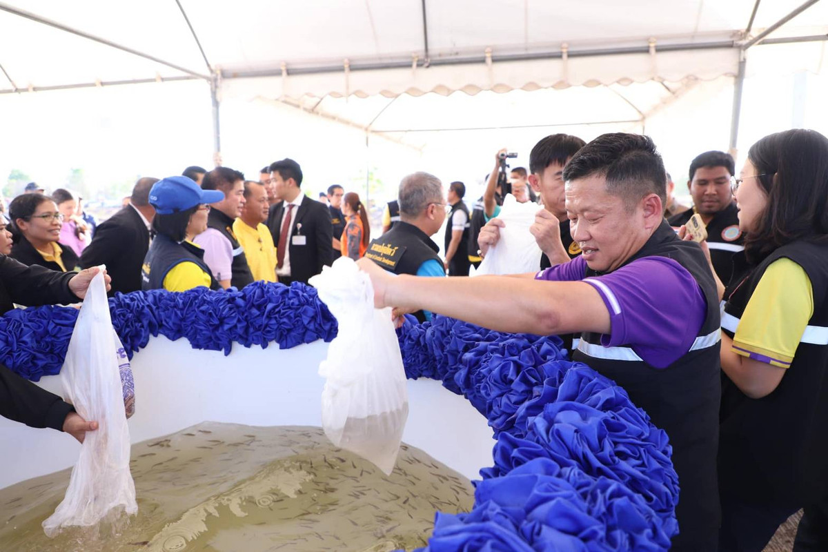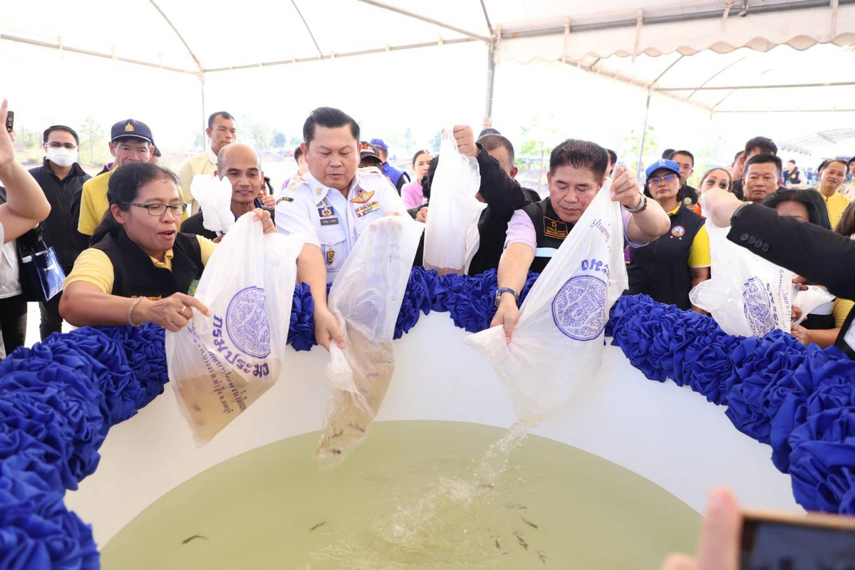 จากนั้น รัฐมนตรีว่าการกระทรวงเกษตรฯและคณะ ได้ไปปล่อยพันธ์ุสัตว์น้ำ ซึ่งเป็นสัตว์เศรษฐกิจ สร้างเม็ดเงิน สร้างรายได้ให้แก่เกษตรกรในชุมชน จำนวน 200,000 ตัว ด้วย