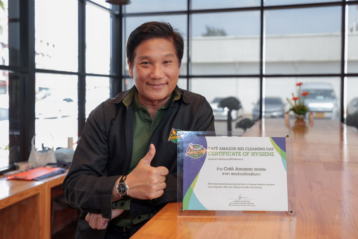 ในโอกาสนี้ นายดิษทัต ยังได้มอบประกาศนียบัตรด้านสุขอนามัย (Certificate of Hygiene) ให้แก่นายสมยศ โสตะ ผู้บริหารร้านคาเฟ่ อเมซอน สาขาซอยร่วมมิตรพัฒนา เป็นร้านแรกของประเทศไทย โดยพิจารณาจากสภาพแวดล้อมและบรรยากาศของร้านทั้งภายในและภายนอก ทั้งนี้ ร้านคาเฟ่ อเมซอน ได้ให้ความสำคัญกับการปฏิบัติตามมาตรฐานที่กำหนด เพื่อส่งมอบสินค้าและบริการที่มีคุณภาพให้กับผู้บริโภคทุกท่าน โดยได้ดูแลเรื่องความสะอาด สุขอนามัย ในทุกขั้นตอน ซึ่งกิจกรรม Big Cleaning Day ในครั้งนี้ จะช่วยส่งเสริมภาพลักษณ์ของแบรนด์ คาเฟ่ อเมซอน เพิ่มความเชื่อมั่น และมอบประสบการณ์ที่ดีต่อผู้บริโภคเพื่อความยั่งยืนตลอดไป