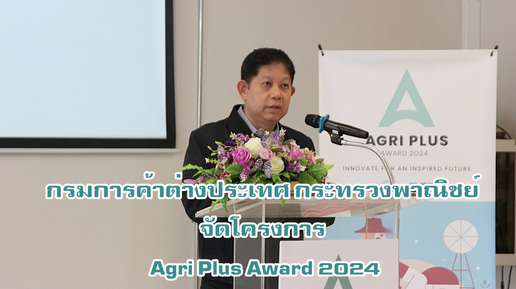(มีคลิป)กรมการค้าต่างประเทศ กระทรวงพาณิชย์ จัดโครงการ Agri Plus Award 2024 เร่งผลักดันสินค้านวัตกรรมเกษตรเข้าสู่ตลาดในไทยและต่างประทศ หนุนผู้ประกอบการ นักศึกษาตลอดจนนักวิจัยใช้นวัตกรรมสร้างมูลค่าเพิ่มให้ผลิตภัณฑ์หรือบริการได้อย่างเป็นรูปธรรม สามารถเพิ่มรายได้อย่างยั่งยืน