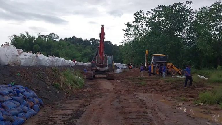 เร่งขุดลอกปรับพื้นที่ เสริมคันดิน ทำแนววางกระสอบทรายบิ๊กแบ็ค ในพื้นที่ อำเภอเมือง จังหวัดเลย